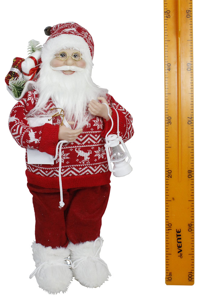Новогодний сувенир Санта-Клаус с подарками и фонарем 45см красный,белый 1шт 4807